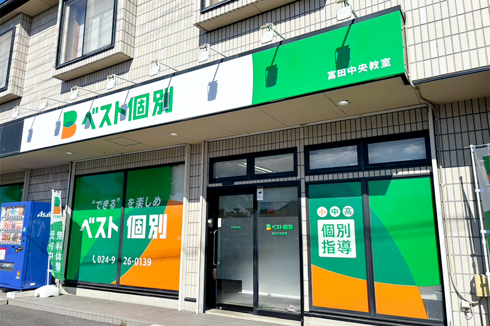 郡山にあるベスト個別 富田中央教室は、富田中学校から徒歩10分に教室がございます。
