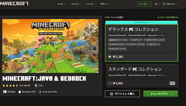 ここでは、マインクラフト公式サイトからの買い方の手順を紹介します。