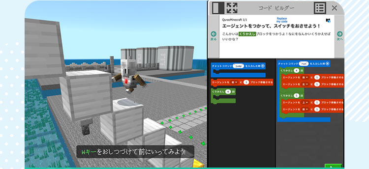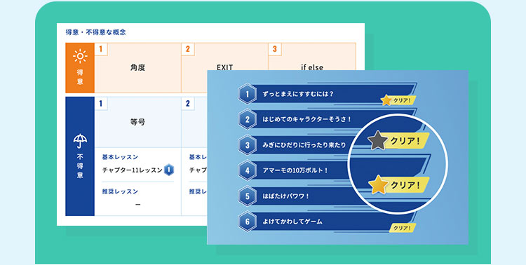 - 教室で学ぶ方が、わからなくなっても教えてもらえるしたくさん進めることができるのが楽しいし、良い。あと一緒にやっている友達に負けたくなくて、やる気がでる!レベルとか良いバッジをどっちが先に取れるか競争してる。学んだ知識を使って、連打して2人で対戦できるゲームを作ることができた!次は敵がたくさん出てくるようなゲームを作りたくて、キュレオでたくさんレッスンを進めて勉強したいと思ってる!