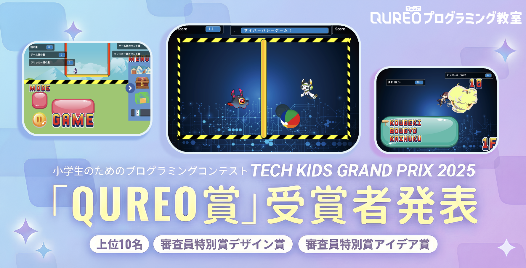 これに伴い、「QUREOプログラミング教室」が「Tech Kids Grand Prix 2025」に協賛し設置されている特別賞「QUREO賞」の受賞者を本日発表いたします!
